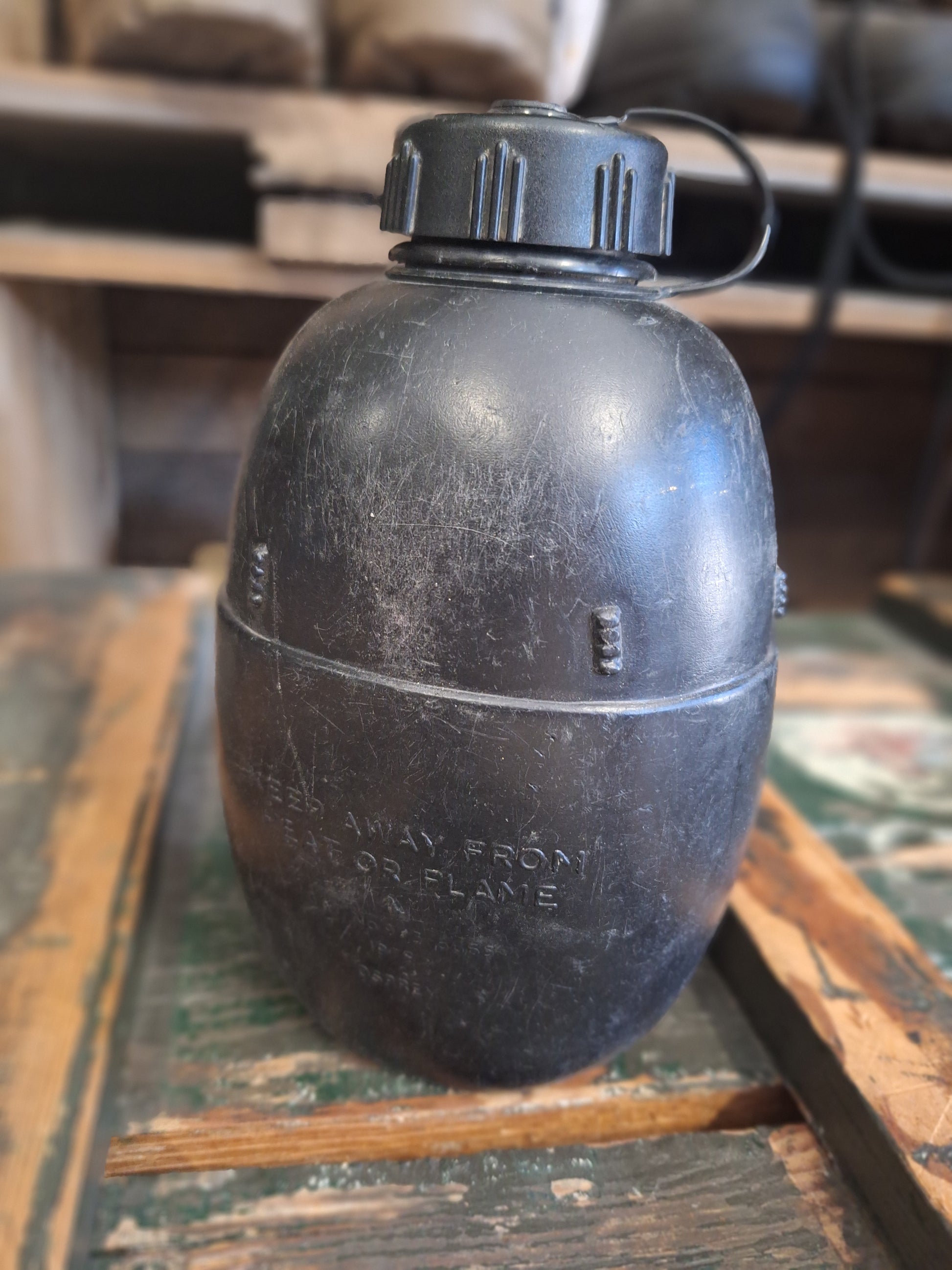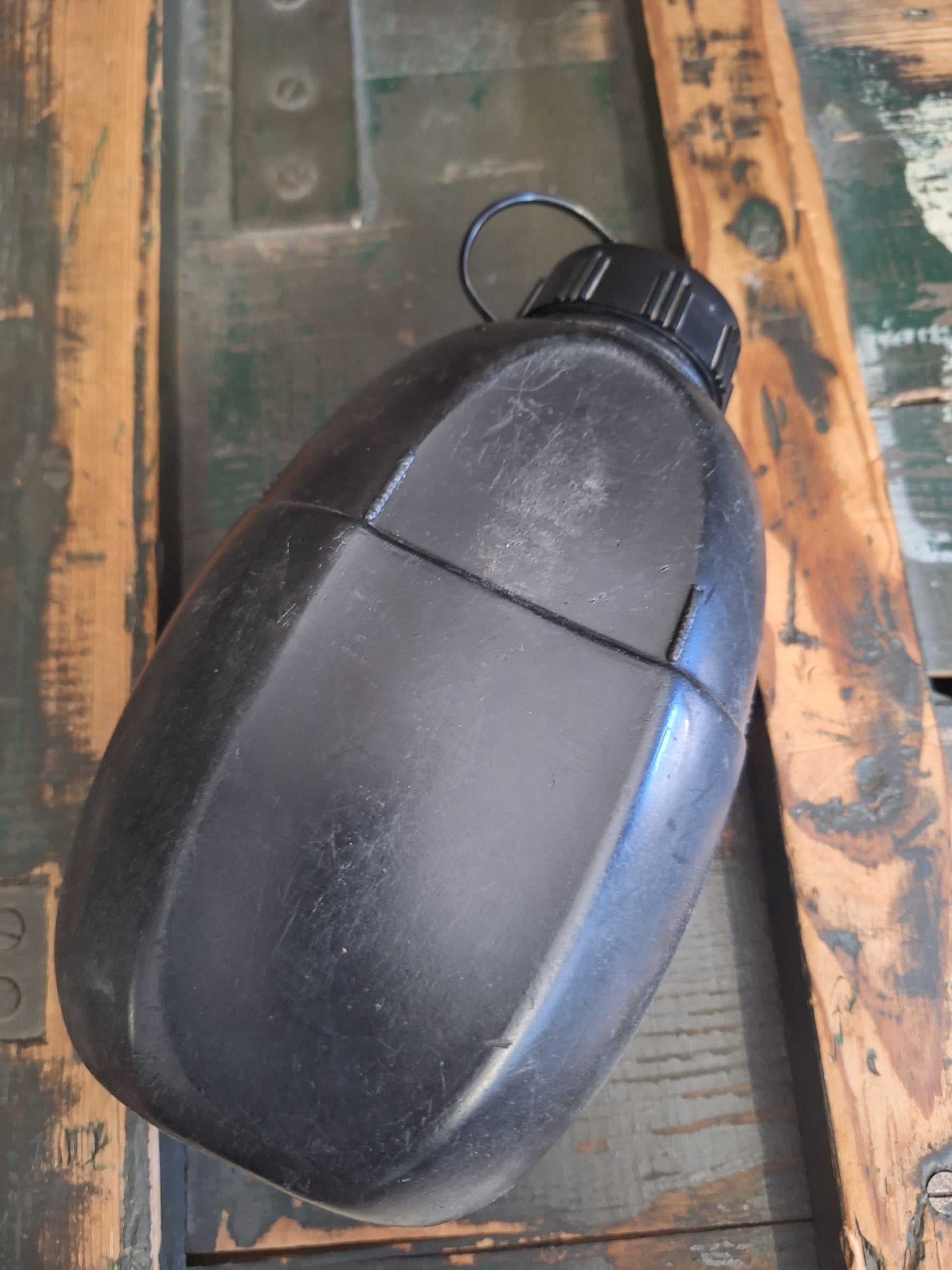 Duża czarna manierka brytyjskiej armii.